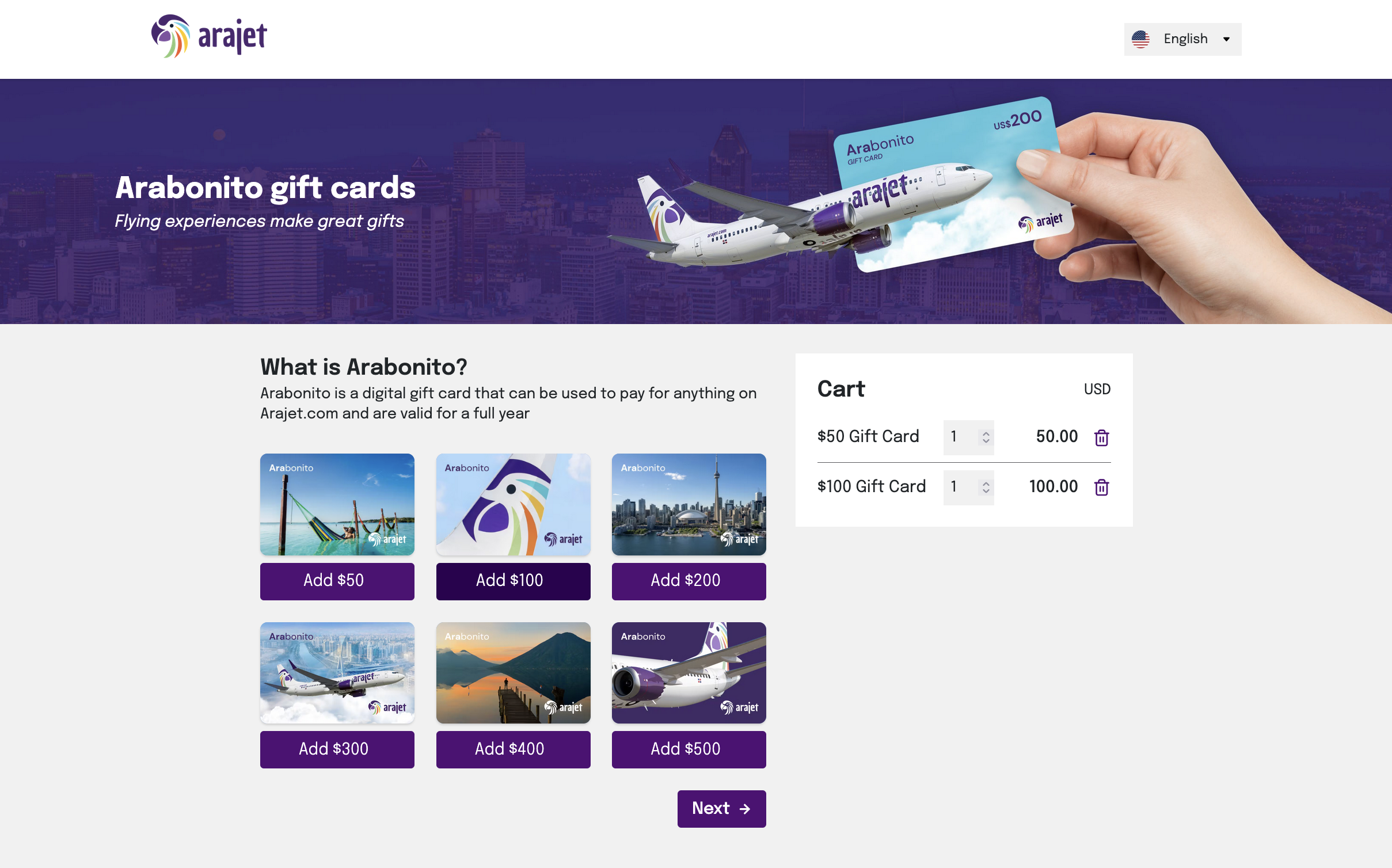 I designed and developed the frontend for Arajet’s Gift Card Program Arabonito, while working as a subcontractor under Huagati Systems.